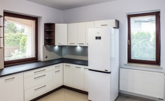 w pełni wyposażona kuchnia z oknem (zmywarka, płyta indukcyjna, piekarnik, lodówka),