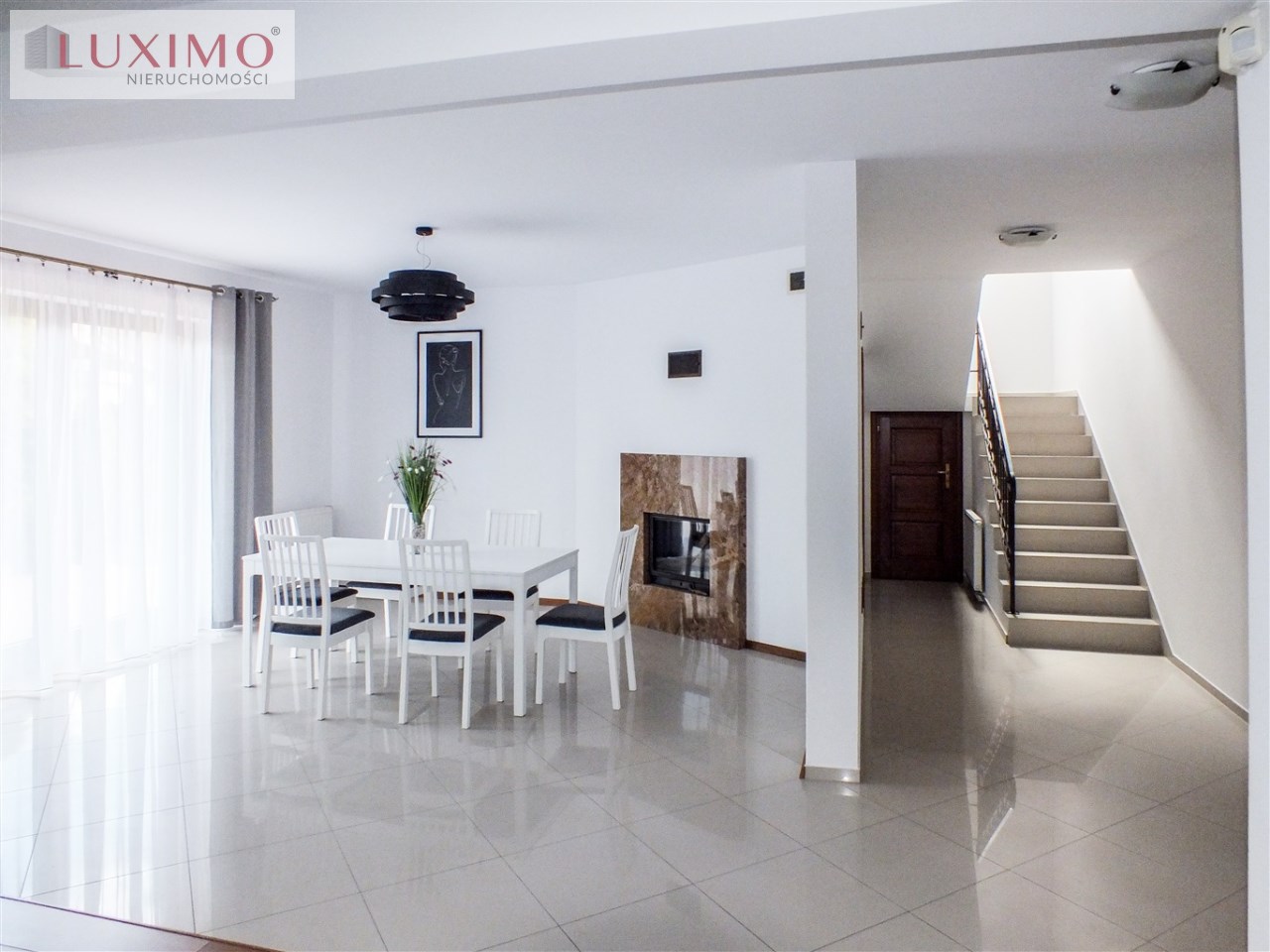 • przestronny salon z kominkiem oraz wyjściem na taras i do ogrodu,