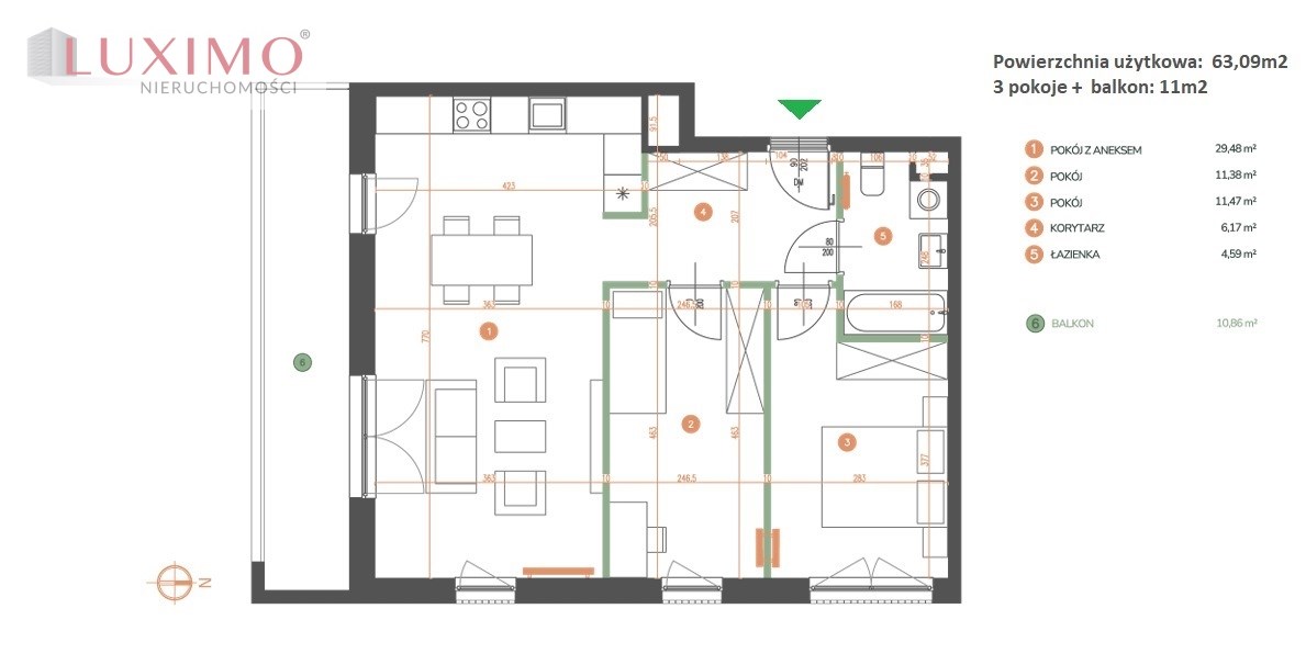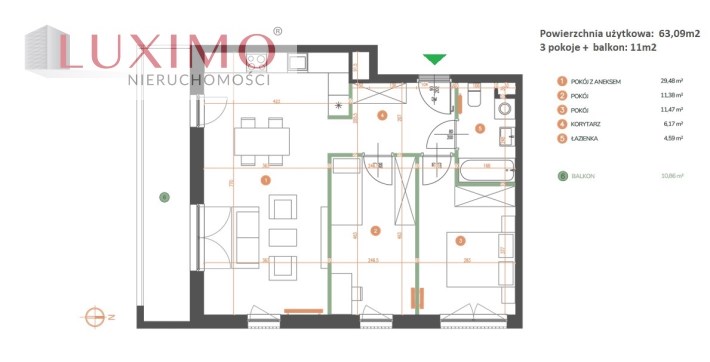 Powierzchnia użytkowa 63,09 m²