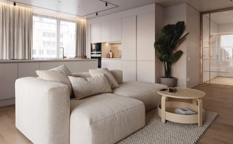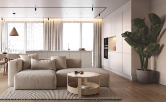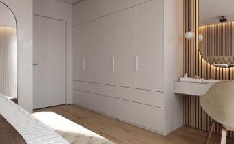 Składa się z: salonu z aneksem kuchennym (29,60m2), 2 sypialni (15,61m2; 10,23m2), łazienki (5,98m2), oddzielnej toalety (2,22m2) oraz przedpokoju (7,56m2).