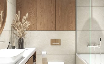 Składa się z: ustawnego salonu z aneksem kuchennym (26,81m2), sypialni (13,48m2), 2 pokoi (9,05m2 i 8,40m2) 2 łazienek (5,49m2 i 3,17m2) oraz przedpokoju (12,43m2).