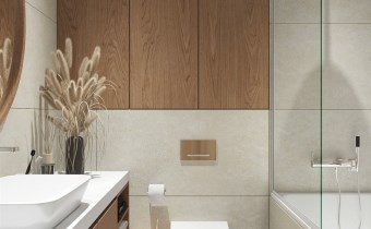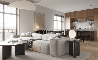 Składa się z: ustawnego salonu z aneksem kuchennym (26,81m2), sypialni (13,48m2), 2 pokoi (9,05m2 i 8,40m2) 2 łazienek (5,49m2 i 3,17m2) oraz przedpokoju (12,43m2).