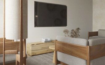 Składa się z: pokoju dziennego z aneksem kuchennym (20,39m2), sypialni (10,57m2) łazienki (4,59m2) i przedpokoju (4,15m2).