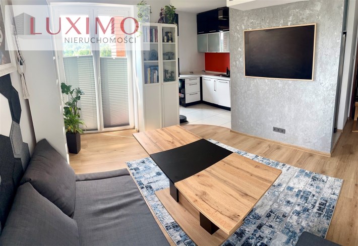 W skład nieruchomości wchodzą: salon z aneksem kuchennym, oddzielna sypialnia, łazienka, przedpokój z zabudową oraz balkon o powierzchni 3,9m2.