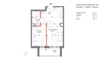 Mieszkanie o powierzchni 42,96m2 z balkonem o pow. 5,95m2, usytuowane na 2 piętrze w nowoczesnym kameralnym budynku z cichobieżną windą.