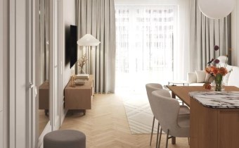 Składa się z: przestronnego salonu z aneksem kuchennym (24,13m2), 2 sypialni (11,31m2 i 11m2), łazienki (4,59m2) i przedpokoju (7,56m2).