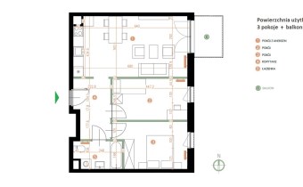 Składa się z: przestronnego salonu z aneksem kuchennym (24,13m2), 2 sypialni (11,31m2 i 11m2), łazienki (4,59m2) i przedpokoju (7,56m2).