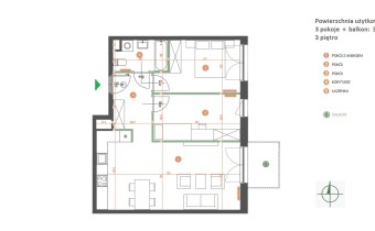 Mieszkanie o powierzchni 63,09m2 z balkonem o pow. 3,96m2, usytuowane na 3 piętrze w nowoczesnym budynku z 2025r. z cichobieżną windą.