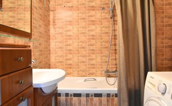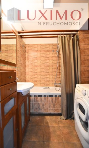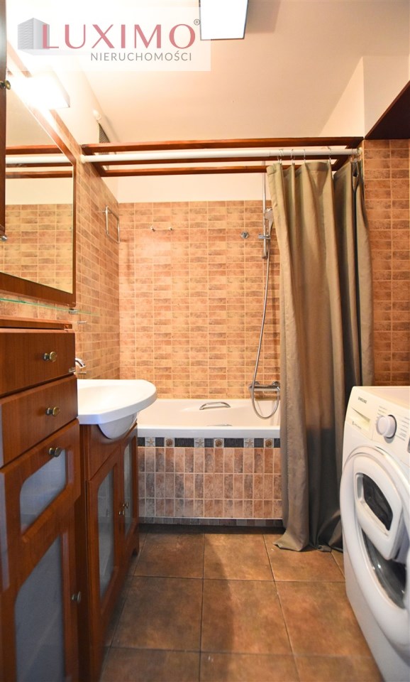 - łazienka z wanną, umywalką i pralką