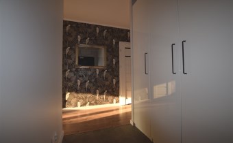Pojemna garderoba (5m2) oraz przedpokój z szafą w zabudowie.